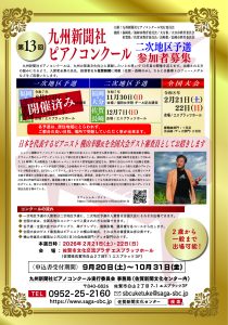 第13回九州新聞社ピアノコンクール(二次地区予選)参加者募集