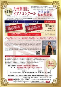 2026年2月21日(土)・22日(日)に開催します「第13回九州新聞社ピアノコンクール全国大会」の参加者募集を下記のとおり行います。